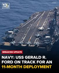 (햄톤로드=특파원) 세계 최대 항공모함 USS 제럴드 R. 포드(CVN-78)가 노폭 해군기지(Naval Station Norfolk)를 모항으로 2025년 6월 24일 출항한 지 8개월 반이 지난 2026년 3월 현재, 미 해군은 귀환 시점을 2026년 5월로 잡으며 총 11개월 장기 배치를 공식 확인했습니다. 이는 베트남전 이후 최장 기록에 근접하는 기간으로, 중동 호르무즈 해협 및 레드해 긴장 고조, 이란 핵시설 공습, 이스라엘-이란 휴전 협상 등 글로벌 위기에 따라 임무가 유럽→카리브해→중동으로 급변하면서 불가피하게 연장된 결과입니다.