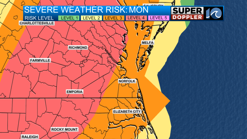 버지니아주 햄톤로드 지역에 강풍과 뇌우, 토네이도 가능성을 동반한 악천후가 예보됨에 따라 월요일 다수의 교육기관과 일부 기관이 휴교 또는 원격수업을 실시하기로 결정하였습니다.